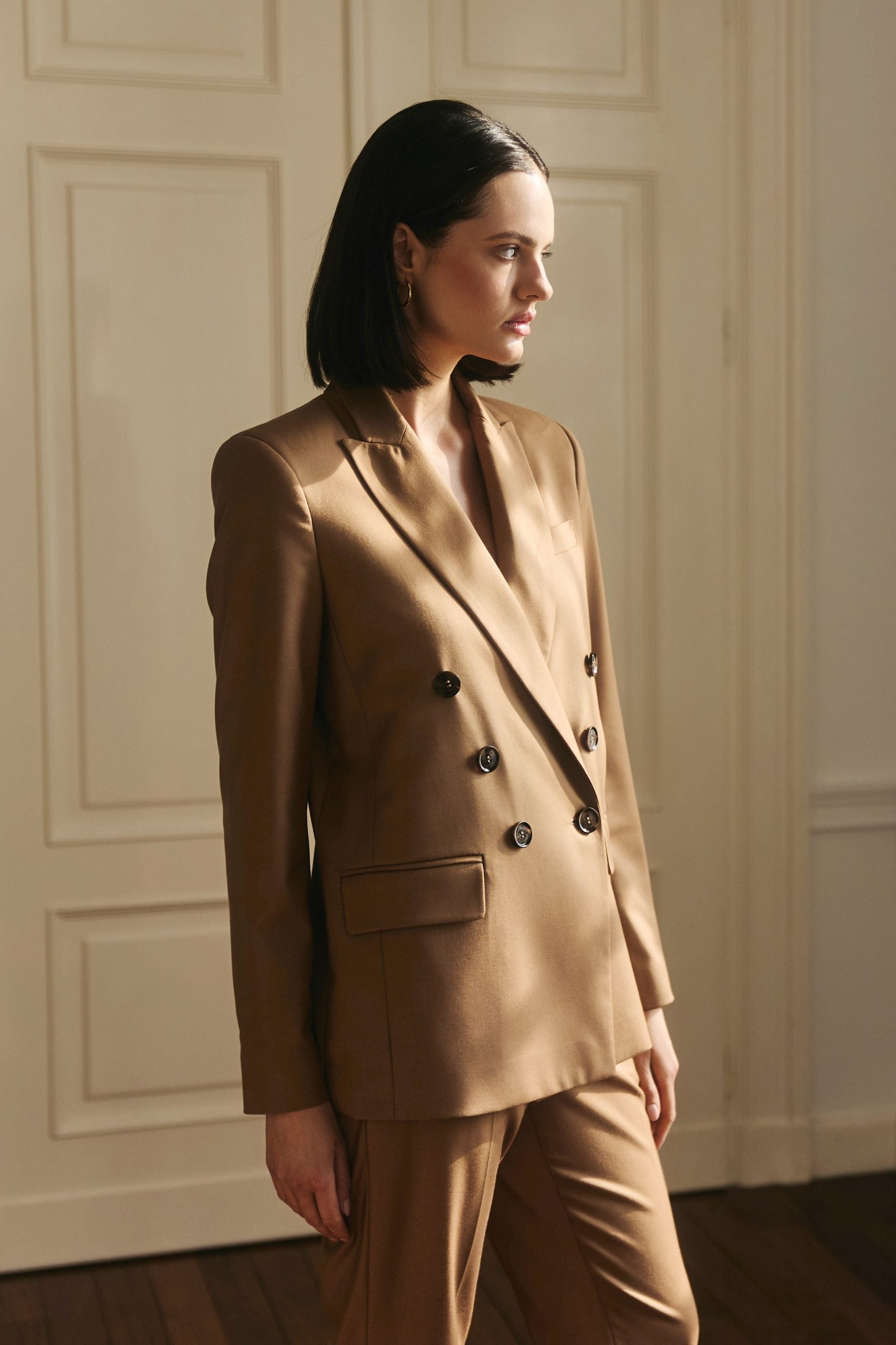 Marynarka dwurzędowa karmelowa