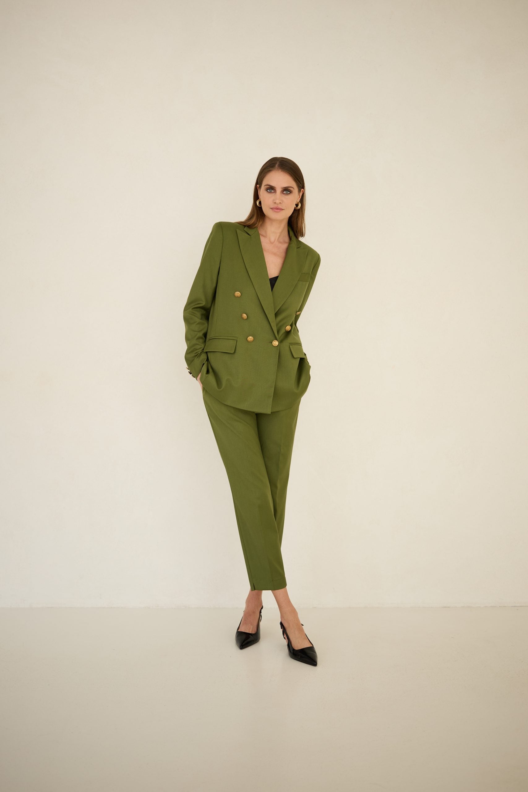 Marynarka dwurzędowa oliwkowa