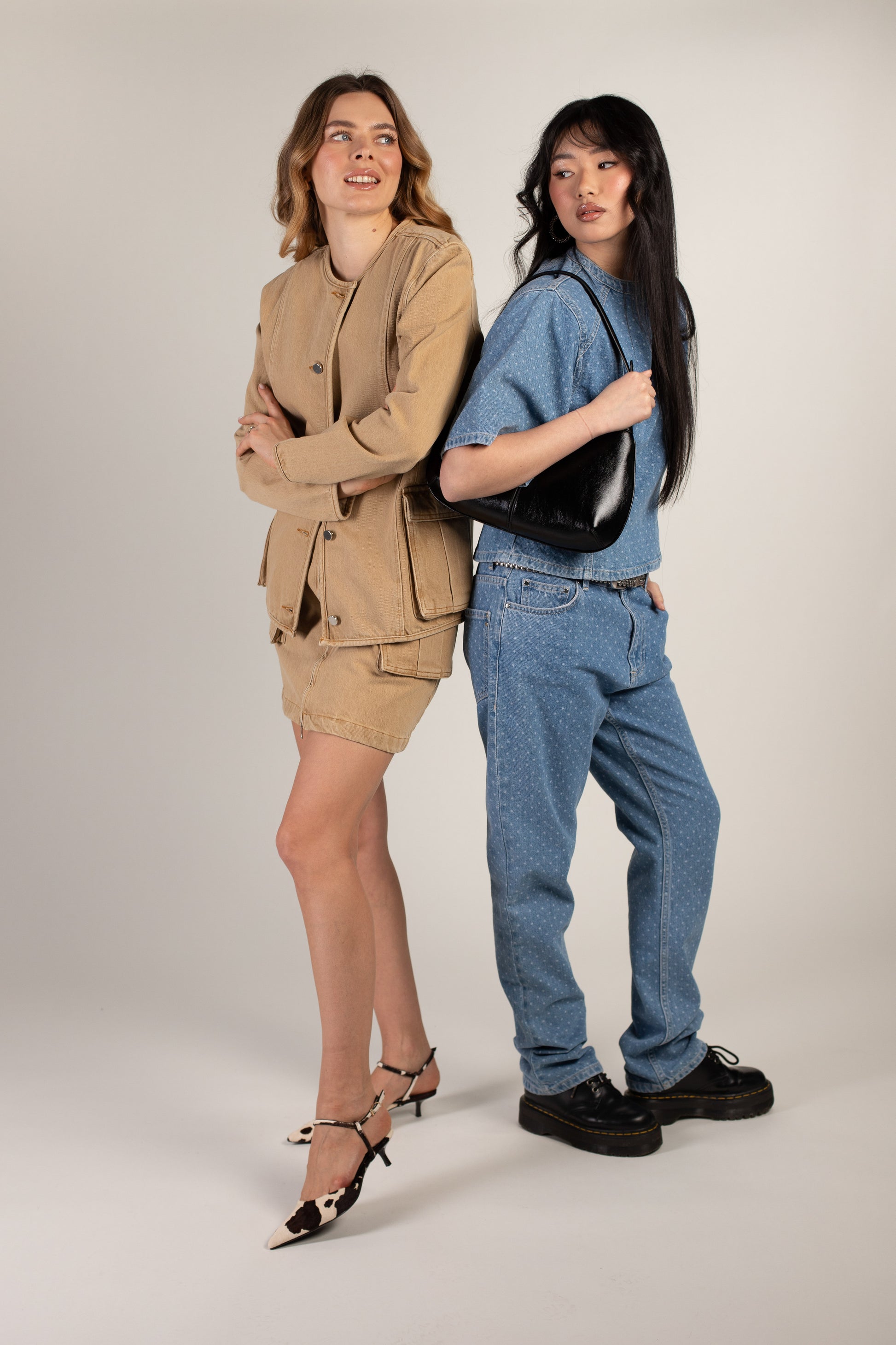 Wykonana z wytrzymałego materiału, spódniczka jest idealna na co dzień. Posiada duże, praktyczne kieszenie z klapkami, które dodają jej wyjątkowego charakteru. Zapięcie na guziki z przodu oraz widoczne przeszycia podkreślają jej casualowy styl.