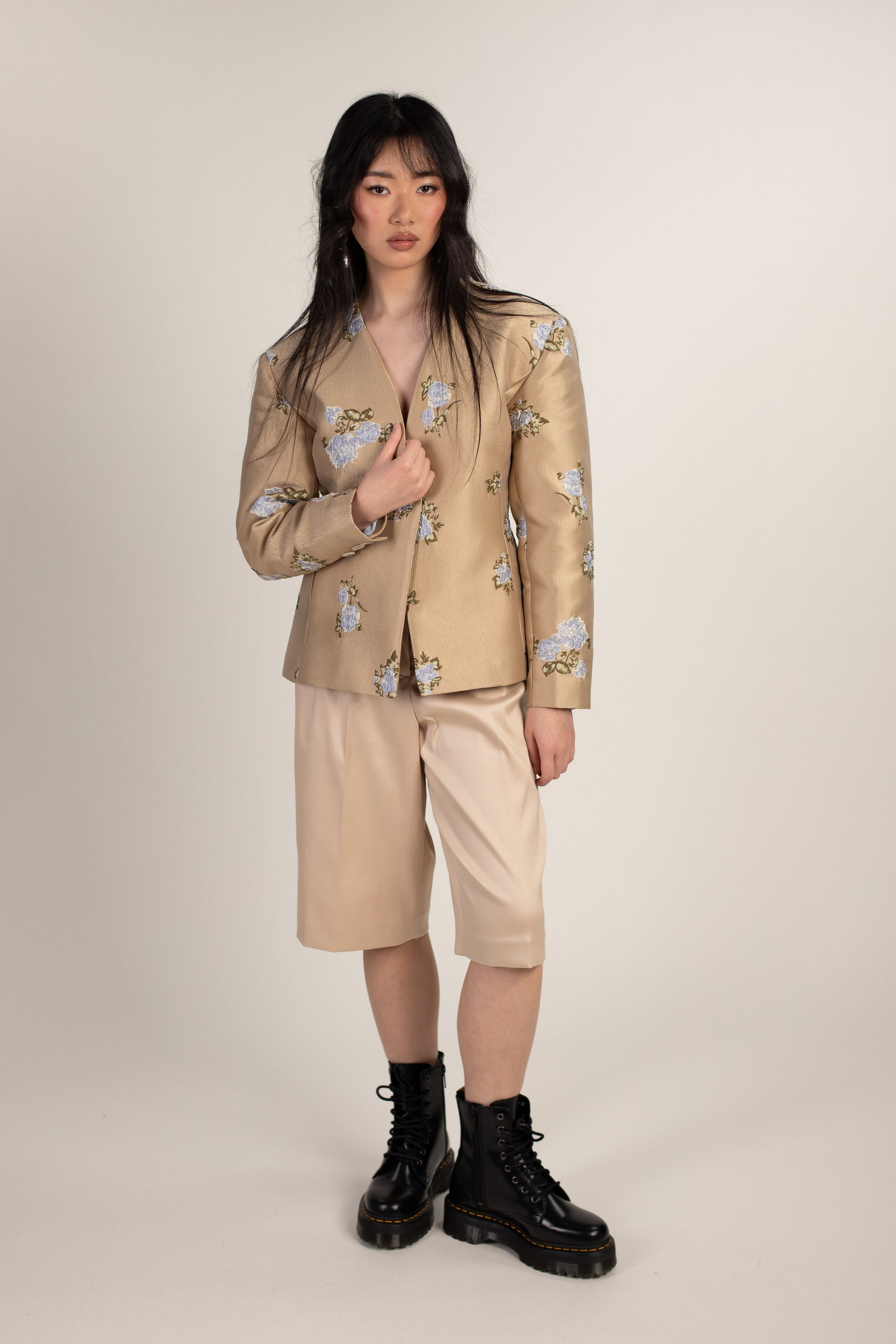 Custommade - Beżowe Bermudy z Wysokim Stanem